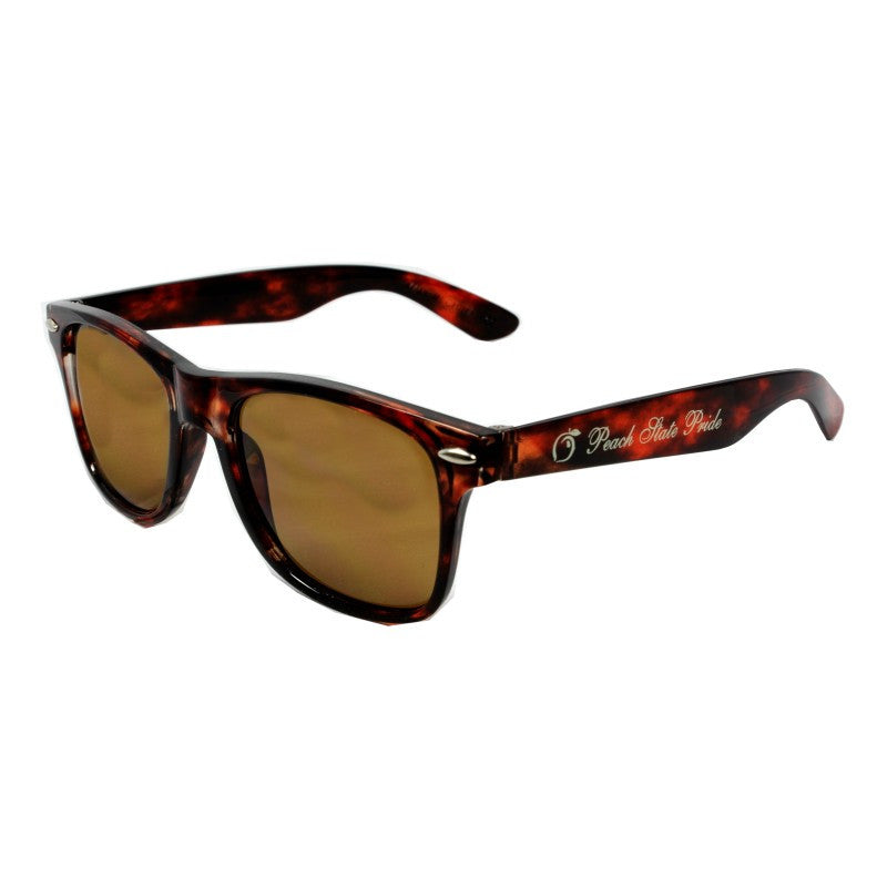 These tortoiseshell sunglasses feature the classic peach logo and ‘Peach State Pride’ on the left arm.