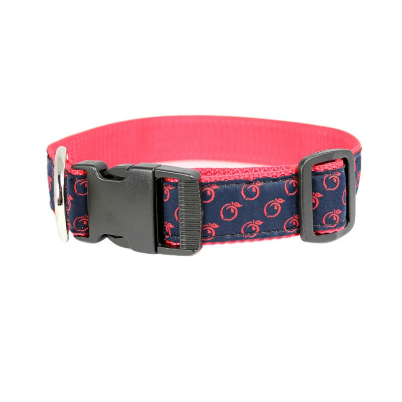 Nylon ribbon collars with classic Peach State Pride logo. Heavy duty plastic snap closure with adjustable sizing. Choose from navy or mint. Made in the U.S.A.