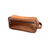 This bag is the perfect for your toiletries, or to throw in your luggage for a last minute trip. The bag is crafted from top grain Colombian cowhide leather in saddle tan with a durable mocha brown nylon lining. It is accented with antique brass-finish hardware.