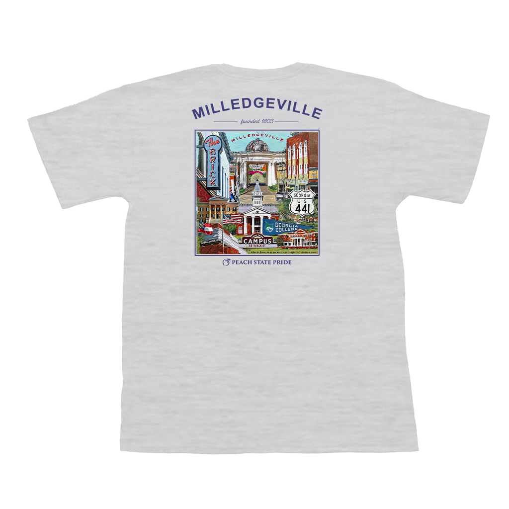 This new tee showcases a vibrant montage of Milledgeville's most iconic landmarks, blending city pride with a bold, modern design. Perfect for locals, visitors, and anyone who loves this city!