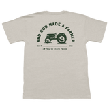We are thankful for Georgia's oldest and largest industry! This Peach State Pride cotton short sleeve pocket t-shirt with a classic fit features the And God Made A Farmer artwork.
