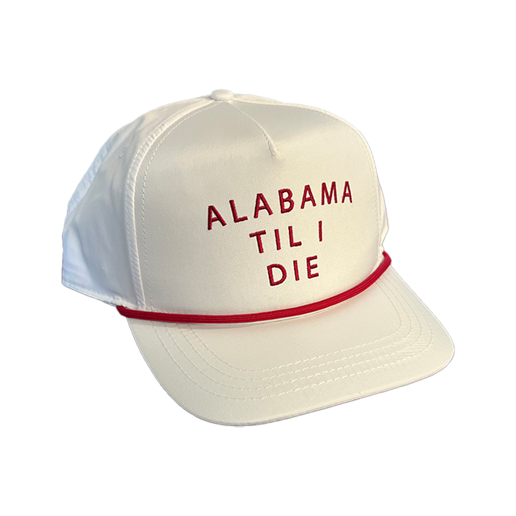 Show your Alabama Pride with this 'ALABAMA TIL I DIE' 5 Panel Rope Hat! With its versatile color and Alabama pride inspired design, this performance hat is sure to be the hit of any gathering or tailgate.