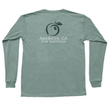 We love some good ole' Hometown Pride and are thrilled to offer you a customized piece to celebrate your southern roots! This style features our classic Peach State Pride logo and the town you love. Our cotton long sleeve pocket t-shirt has a classic fit and is a fan favorite.