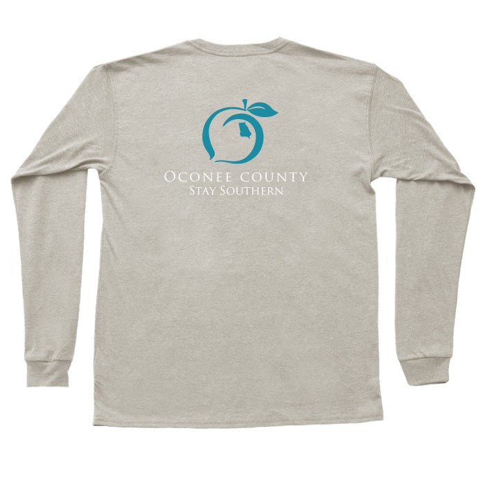 We love some good ole' Hometown Pride and are thrilled to offer you a customized piece to celebrate your southern roots! This style features our classic Peach State Pride logo and the town you love. Our cotton long sleeve pocket t-shirt has a classic fit and is a fan favorite.