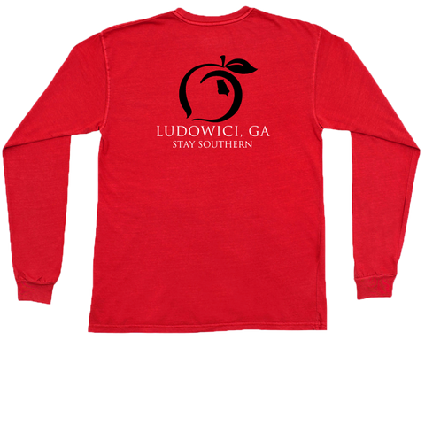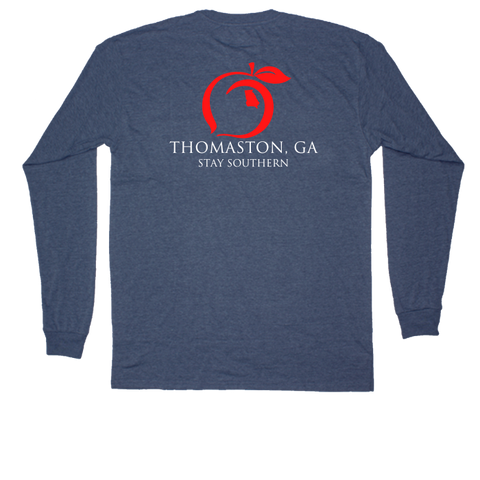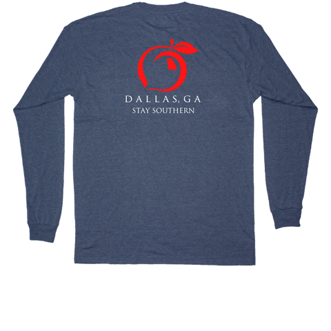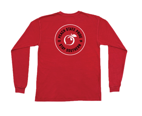 There are few things we love more than some good ole' Hometown Pride and are thrilled to offer you a customized piece to celebrate your southern roots! This style features our classic Peach State Pride logo and the town you love. Our cotton long sleeve pocket t-shirt has a classic fit and is a fan favorite.