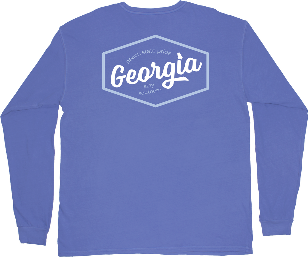 The Peach State Pride cotton short sleeve pocket t-shirt with a classic fit featuring Georgia Script Patch Artwork.