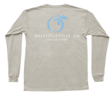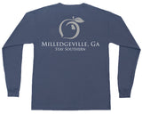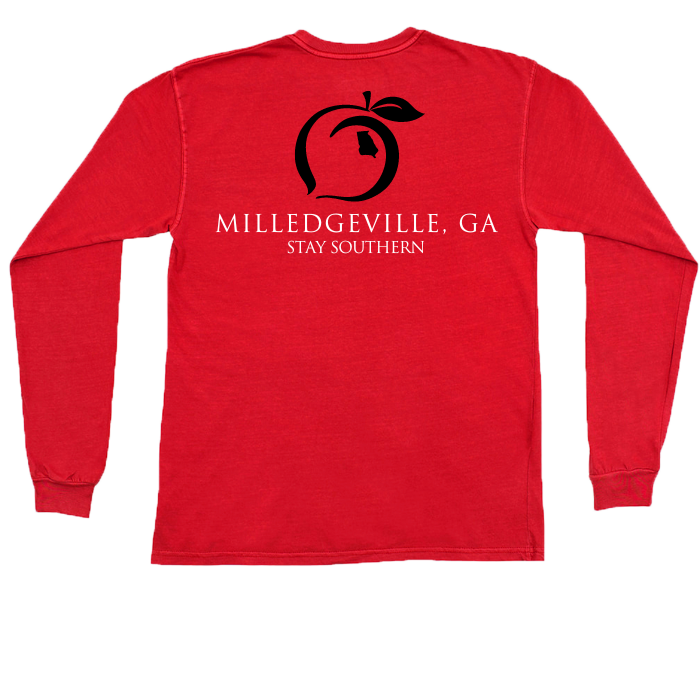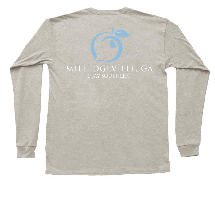 We love some good ole' Hometown Pride and are thrilled to offer you a customized piece to celebrate your southern roots! This style features our classic Peach State Pride logo and the town you love. Our cotton long sleeve pocket t-shirt has a classic fit and is a fan favorite.