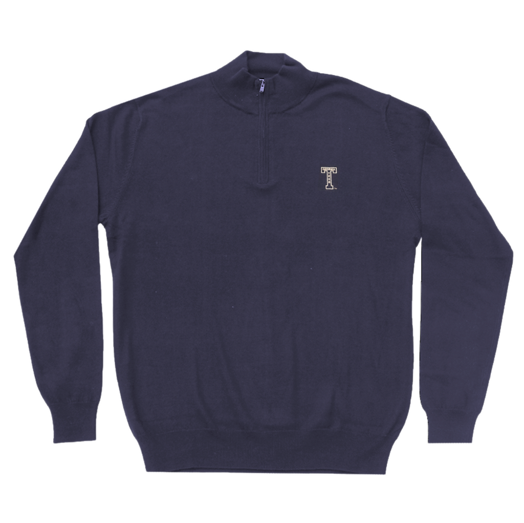 Represent Georgia Tech in style with this navy quarter zip pullover. The cotton-cashmere blend makes these soft, lightweight pullovers ideal for game days, campus life, or relaxed hangouts, this pullover combines comfort and spirit in one versatile piece