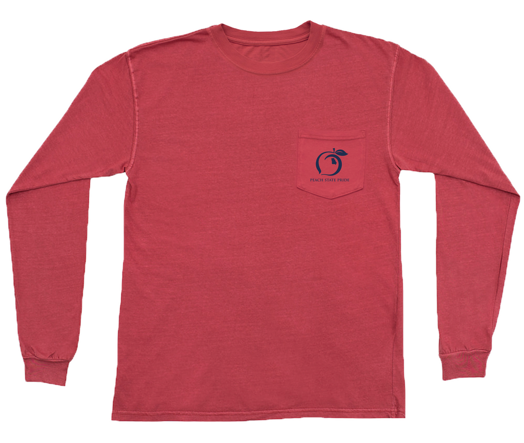 We love some good ole' Hometown Pride and are thrilled to offer you a customized piece to celebrate your southern roots! This style features our classic Peach State Pride logo and the town you love. Our cotton long sleeve pocket t-shirt has a classic fit and is a fan favorite.