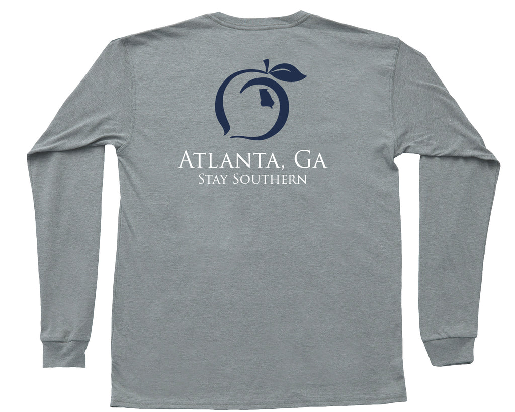 There are few things we love more than some good ole' Hometown Pride and are thrilled to offer you a customized piece to celebrate your southern roots! This style features our classic Peach State Pride logo and the town you love. Our cotton long sleeve pocket t-shirt has a classic fit and is a fan favorite.