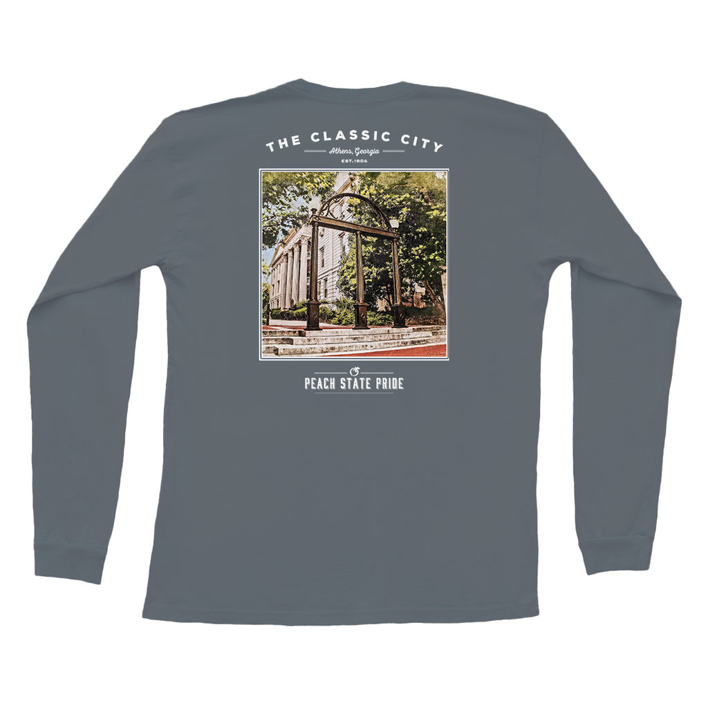 Celebrate the charm and history of Athens, Georgia, with this Classic City tee. Featuring the iconic UGA Arch, this design pays tribute to one of the South’s most beloved college towns. Whether you're a proud Bulldog, an Athens local, or just love the Peach State, this shirt is a timeless addition to your collection.