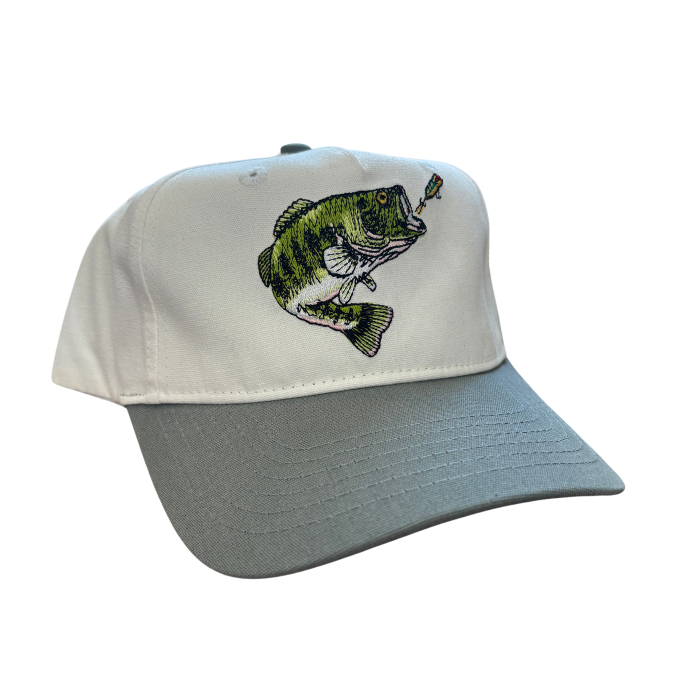 This 5 Panel Cotton Hat features Jumping Bass artwork.