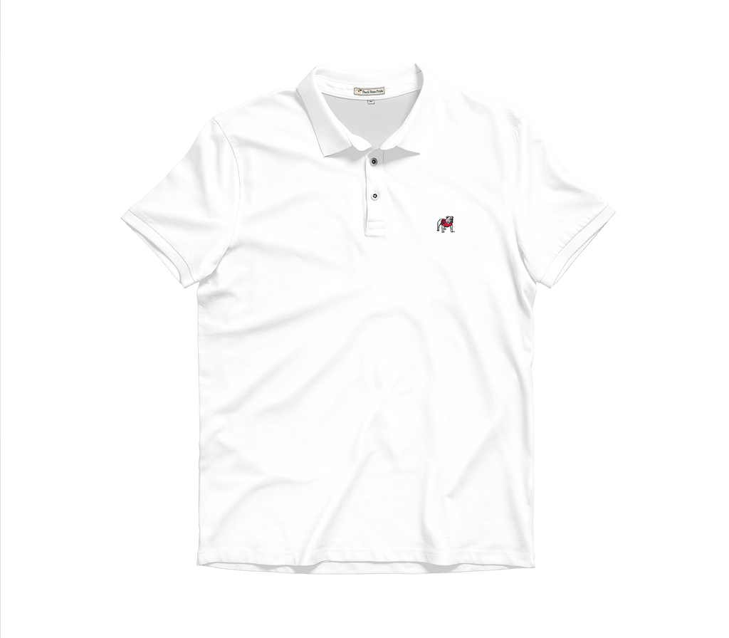 The Peach State Pride White Cotton Lyocell Polo features Standing Dawg Logo at left chest embroidery. This polo offers a lightweight feel keeping you cool and comfortable all day. This polo is great for the game days, weekend outings, or your everyday look!