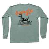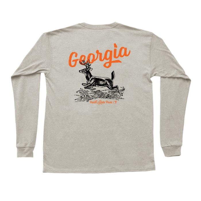 The Peach State Pride cotton long sleeve pocket t-shirt with a classic fit featuring Classic Deer with Georgia Script.