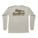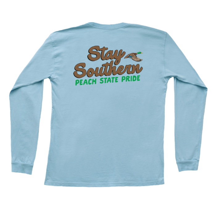 The Peach State Pride cotton long sleeve pocket t-shirt with a classic fit featuring our Stay Southern Duck Design.