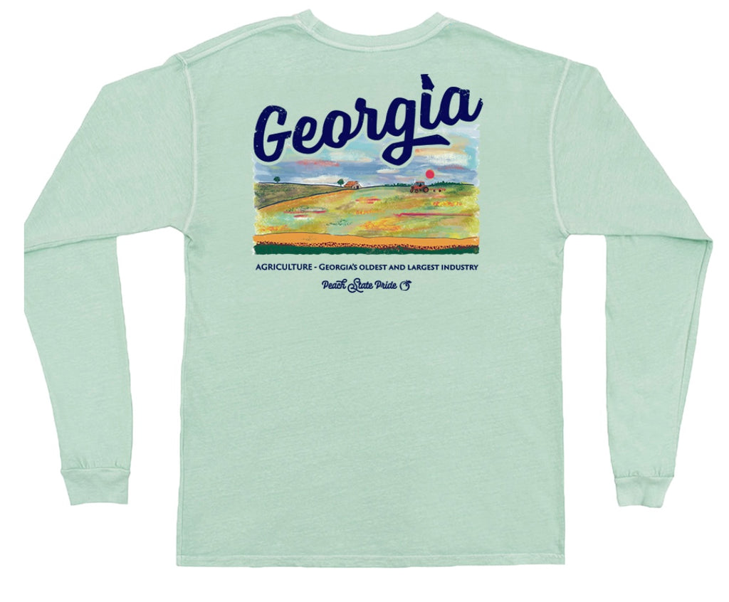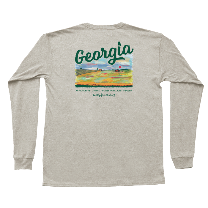 The Peach State Pride YOUTH cotton long sleeve t-shirt with a classic fit featuring the Georgia Ag design.