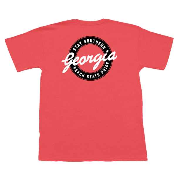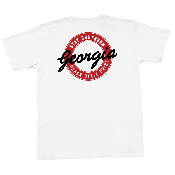 This Peach State Pride cotton short sleeve pocket t-shirt with a classic fit features a Retro Georgia Design