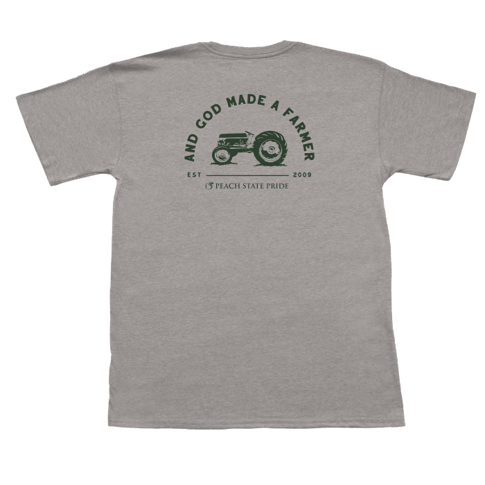 The Peach State Pride YOUTH cotton short sleeve t-shirt with a classic fit featuring the And God Made A Farmer design.