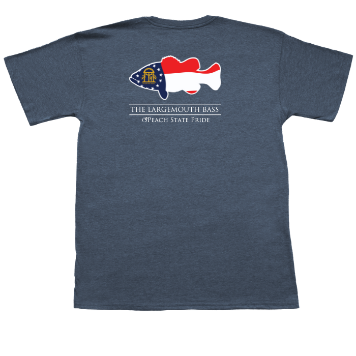 Peach State Pride's Bass Flag short sleeve pocket tee combines 2 pieces of Georgia tradition, the state fish and the state flag. Whether you're a devout angler or a proud Georgian, this shirt is perfect for you.