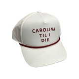 Show your Carolina Pride with this 'CAROLINA TIL I DIE' 5 Panel Rope Hat! With its versatile color and Carolina pride inspired design, this performance hat is sure to be the hit of any gathering or tailgate.
