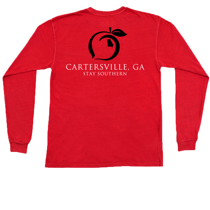 There are few things we love more than some good ole' Hometown Pride and are thrilled to offer you a customized piece to celebrate your southern roots! This style features our classic Peach State Pride logo and the town you love. Our cotton long sleeve pocket t-shirt has a classic fit and is a fan favorite.