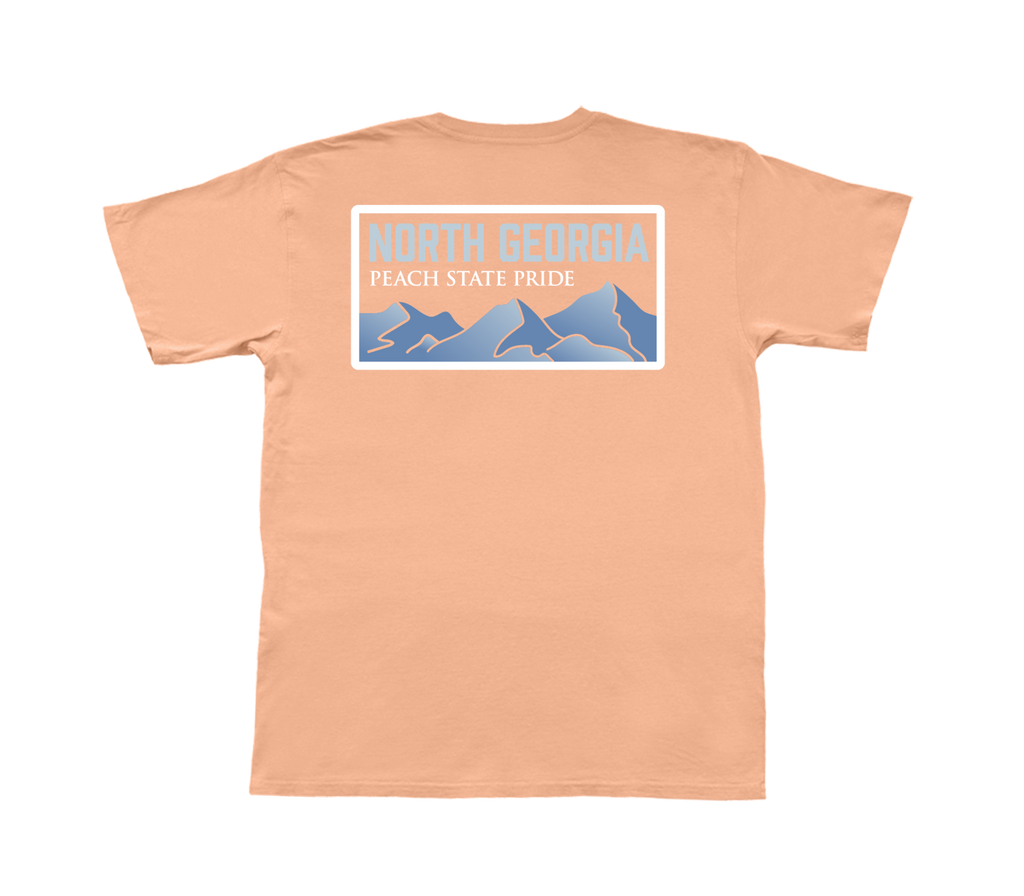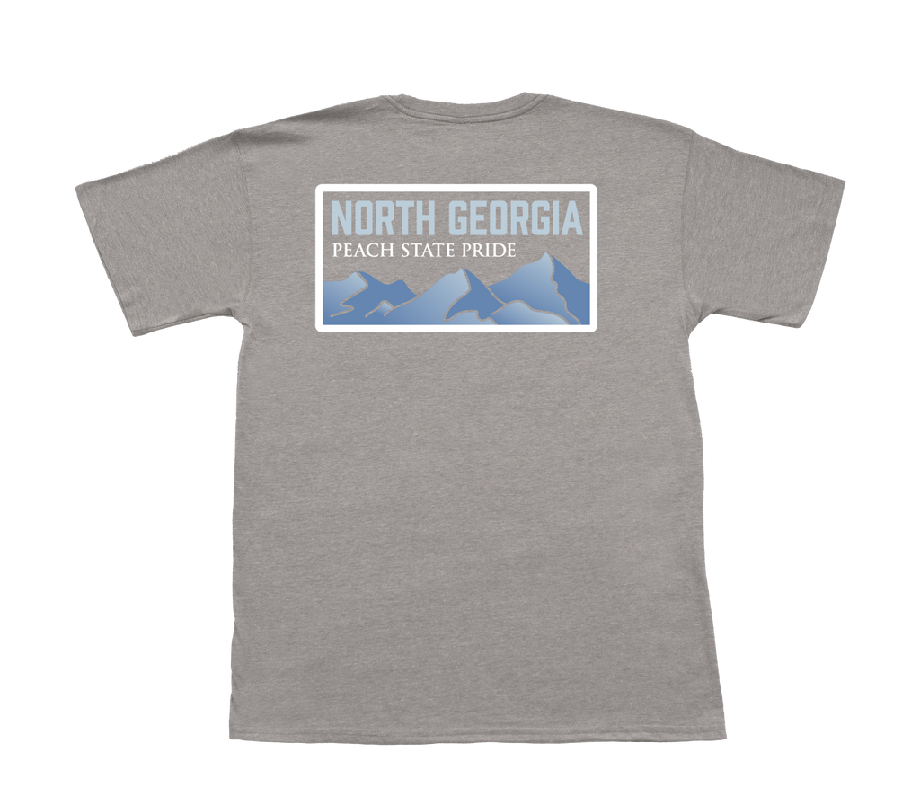 This Peach State Pride cotton short sleeve pocket t-shirt with a classic fit features the North Georgia design.