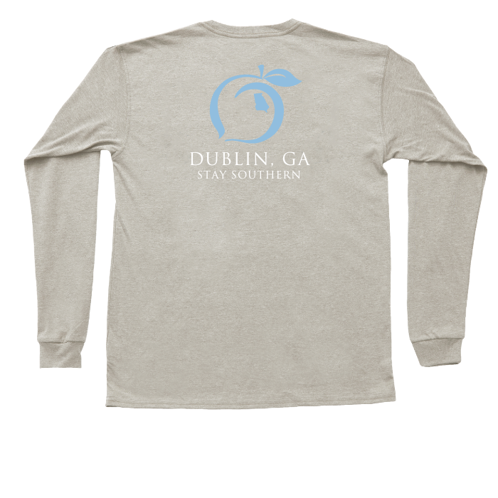 There are few things we love more than some good ole' Hometown Pride and are thrilled to offer you a customized piece to celebrate your southern roots! This style features our classic Peach State Pride logo and the town you love. Our cotton long sleeve pocket t-shirt has a classic fit and is a fan favorite.
