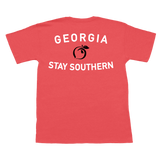 Represent the Peach State in style with this bold "Georgia Stay Southern" tee! Featuring a striking emblem design with a classic peach graphic, this shirt is perfect for anyone who loves Southern charm and Georgia pride.