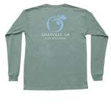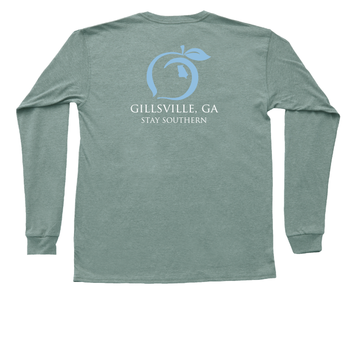 We love some good ole' Hometown Pride and are thrilled to offer you a customized piece to celebrate your southern roots! This style features our classic Peach State Pride logo and the town you love. Our cotton long sleeve pocket t-shirt has a classic fit and is a fan favorite.