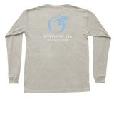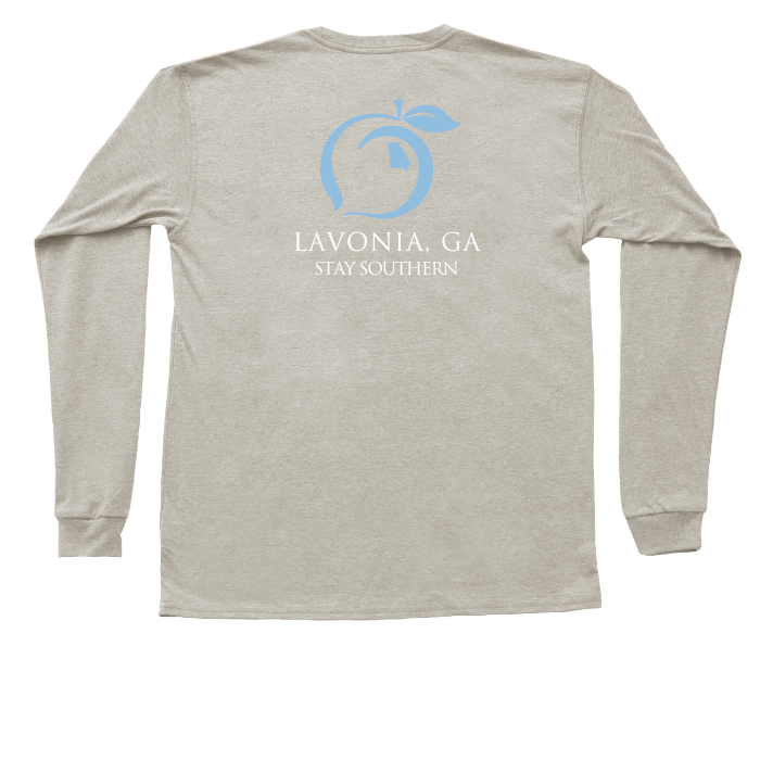 We love some good ole' Hometown Pride and are thrilled to offer you a customized piece to celebrate your southern roots! This style features our classic Peach State Pride logo and the town you love. Our cotton long sleeve pocket t-shirt has a classic fit and is a fan favorite.