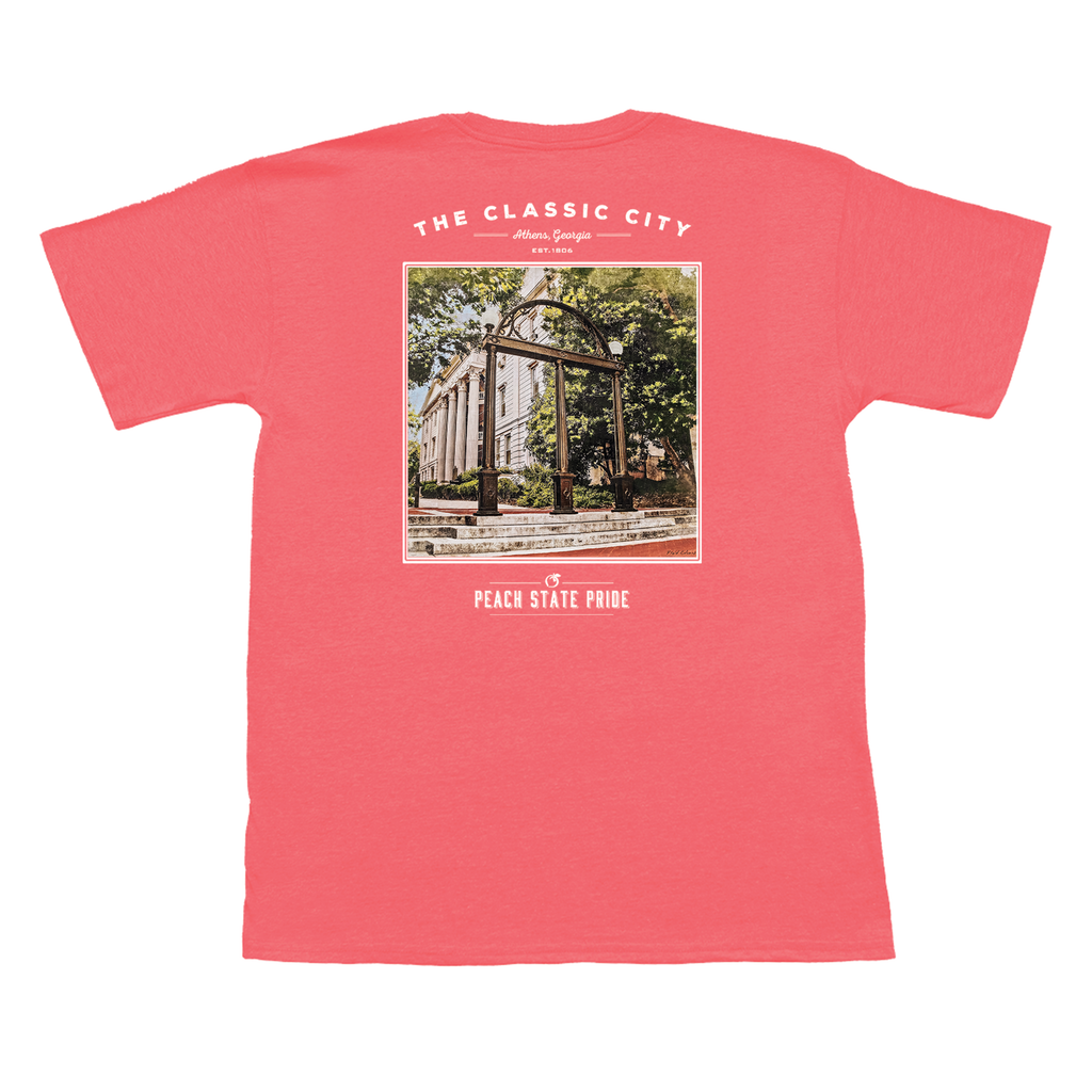 Celebrate the charm and history of Athens, Georgia, with this Classic City tee. Featuring the iconic UGA Arch, this design pays tribute to one of the South’s most beloved college towns. Whether you're a proud Bulldog, an Athens local, or just love the Peach State, this shirt is a timeless addition to your collection.