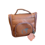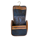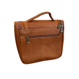 The Hanging Dopp Kit the perfect way to keep your luggage light and toiletries organized. This bag is crafted from top grain cowhide leather, and durable, easy to Clean Mocha Brown Nylon Lining. It is accented with antique brass-finish hardware.