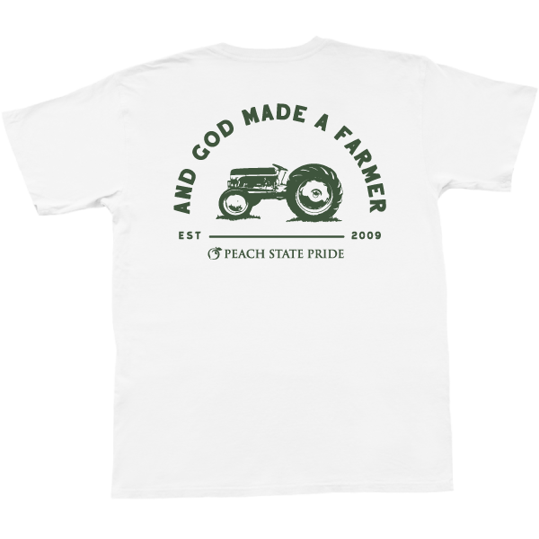 The Peach State Pride YOUTH cotton short sleeve t-shirt with a classic fit featuring the And God Made A Farmer design.