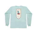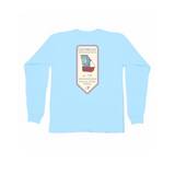 The Peach State Pride YOUTH cotton long sleeve t-shirt with a classic fit featuring the Elberta Pin design, named after the Elberta peach.