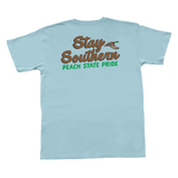 The Peach State Pride cotton youth short sleeve pocket t-shirt with a classic fit featuring Stay Southern Duck Artwork.