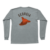 The Peach State Pride Youth cotton long sleeve pocket t-shirt with a classic fit featuring topographical artwork.